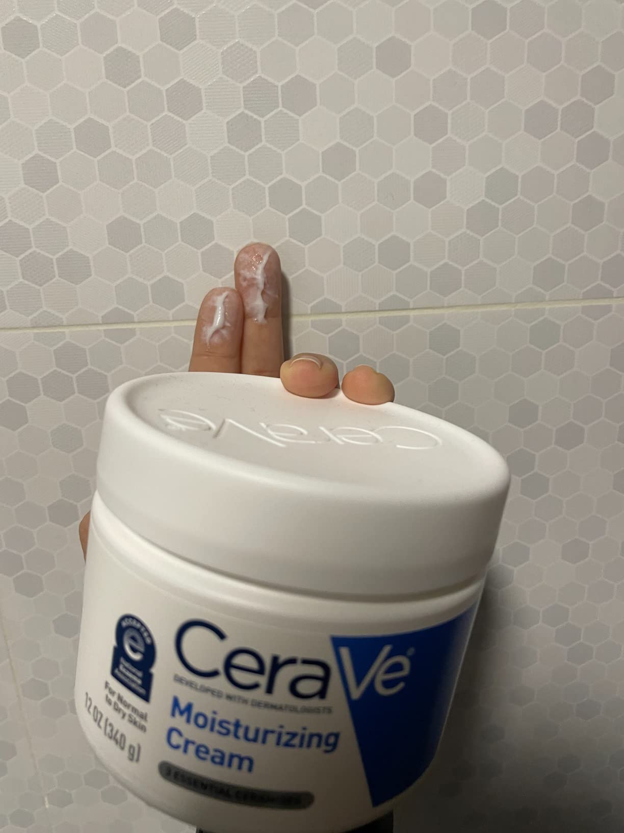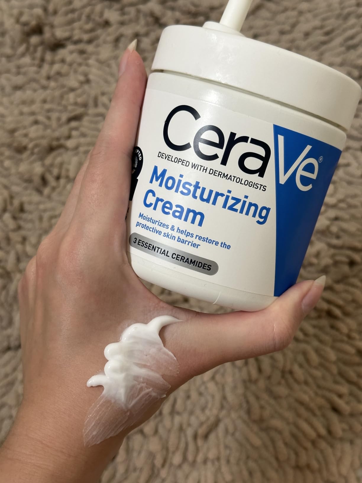 CeraVe Moisturizing Cream is a rich, non-greasy, fast-absorbing moisturizer with three essential ceramides that lock in skin’s moisture and help maintain the skin’s protective barrier.